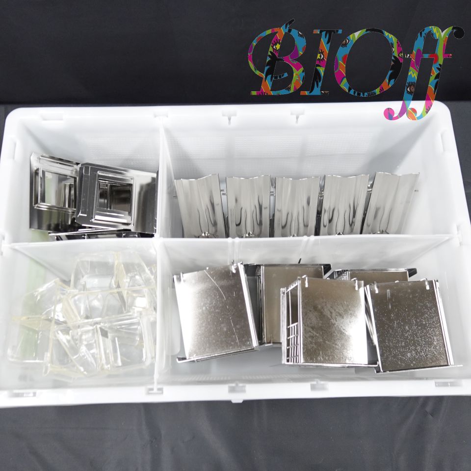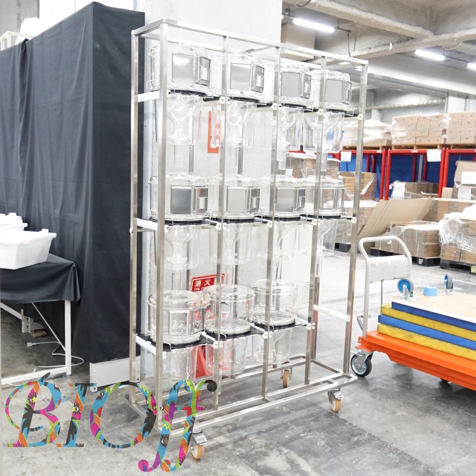 特 長 | ラット代謝ケージを大量使用するときの専用架台で、片面15個・両面30個用があります。 未使用品です。 |