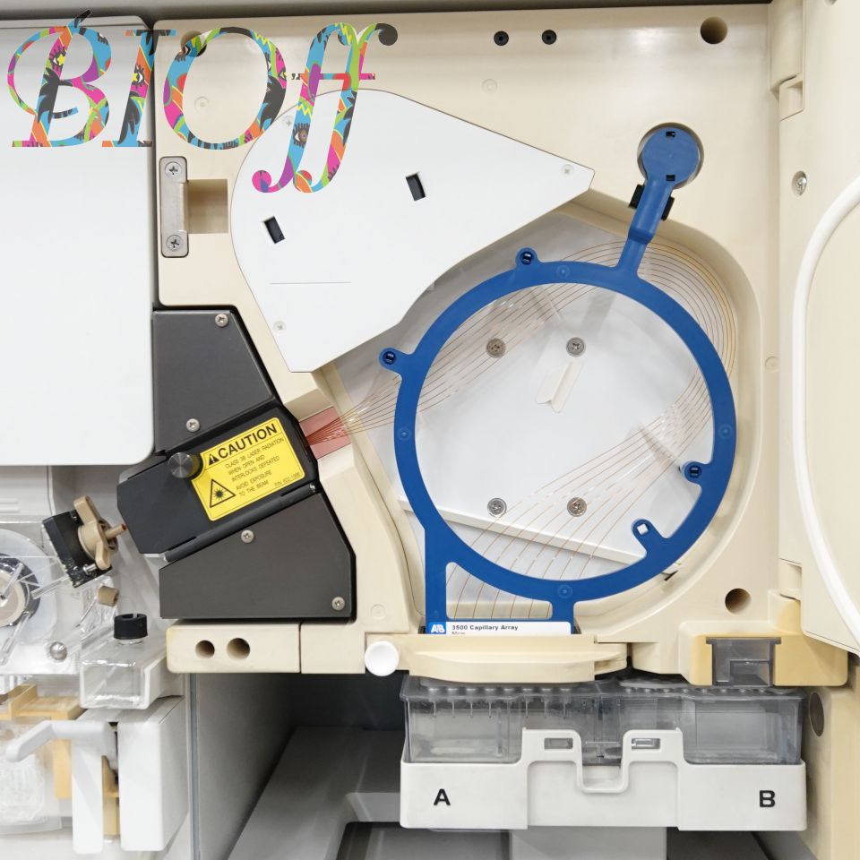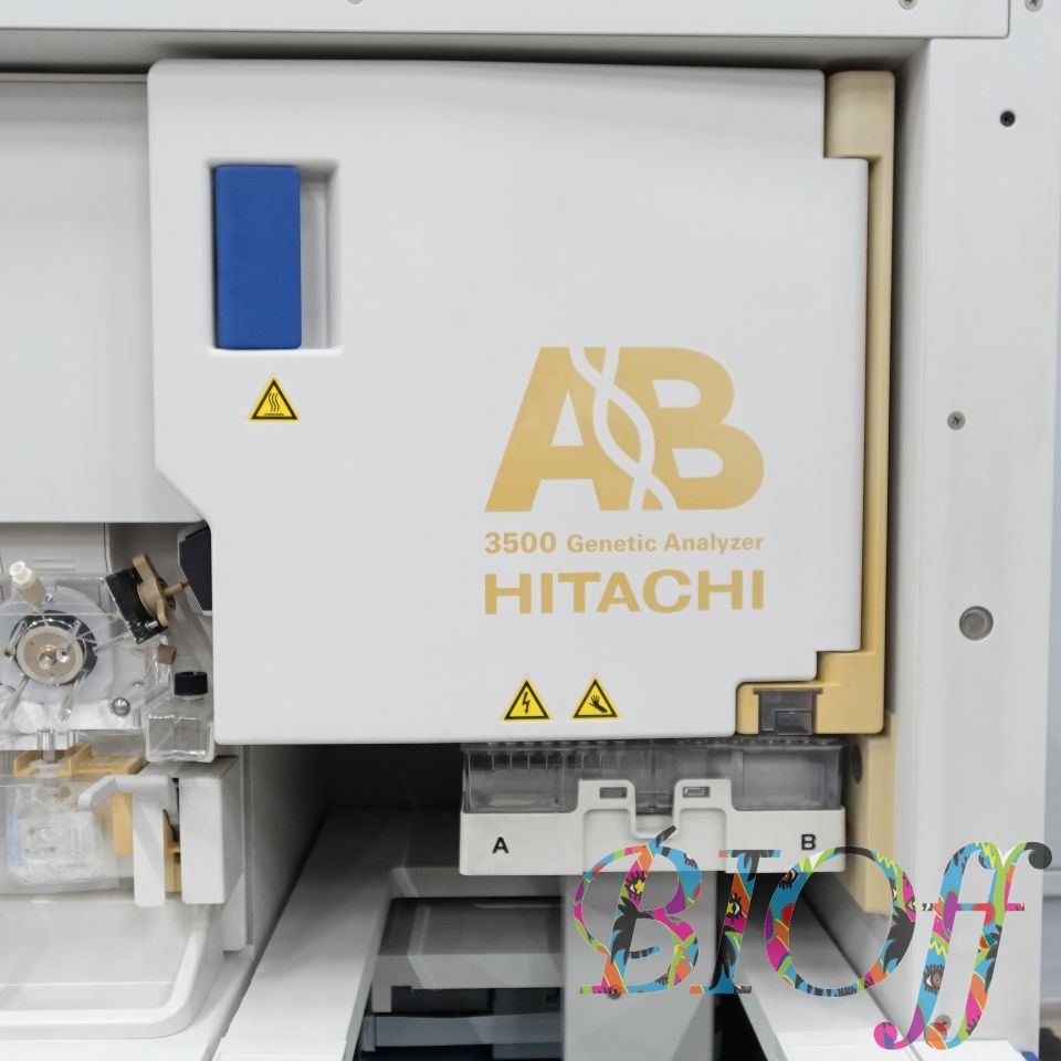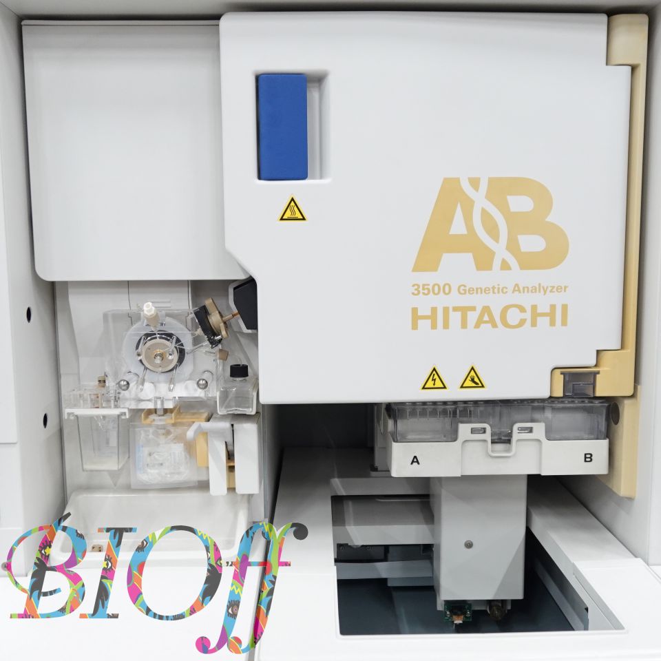 仕 様 | ・モデル:3500 ・キャピラリー数:8本 ・レーザー:単波長 505 nm のソリッドステートレーザー(長寿命) ・消費電力/最大電流:最大電流 15 A、消費電力 (電力損失含む) 約 371 W、あるいは 417 VA 程度(コンピュータ・モニタ除く) ・動作環境:温度:15-30°C(ラン中の変動は ±2°C 以内が望ましい);湿度:20-80%(結露なし) ・色素 (dye) 数:最大 6 色ユニークダイによるマルチプレックス解析が可能。 ・温度制御:アクティブ温度制御。オーブン部で 18〜70°C の範囲。 ・寸法:幅(扉閉時)約 61 cm、開扉時 122 cm;奥行き 61 cm;高さ 72 cm ・重量:約 82 kg ・電源:主電源 100-240 V ±10%、50-60 Hz ±10% ①MITSUBISHI RDT262WH 液晶ディスプレイ ②デスクパソコン(黒)DELL など |