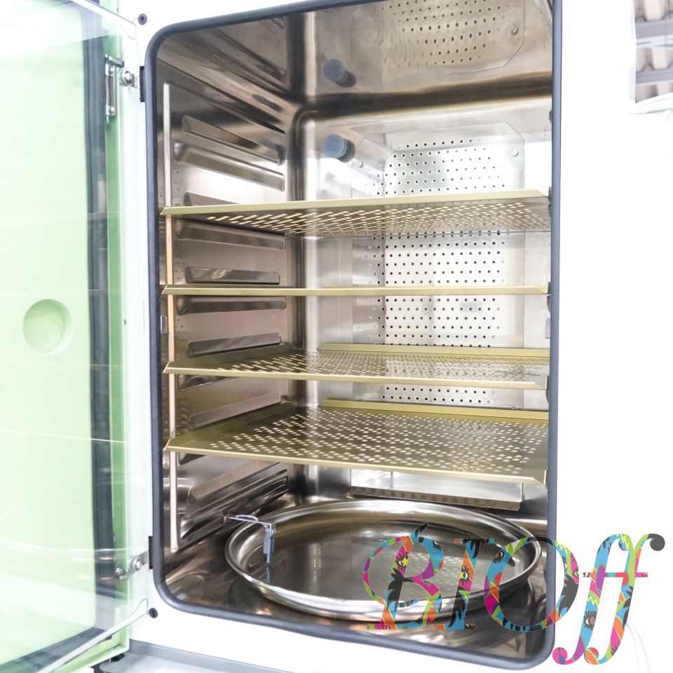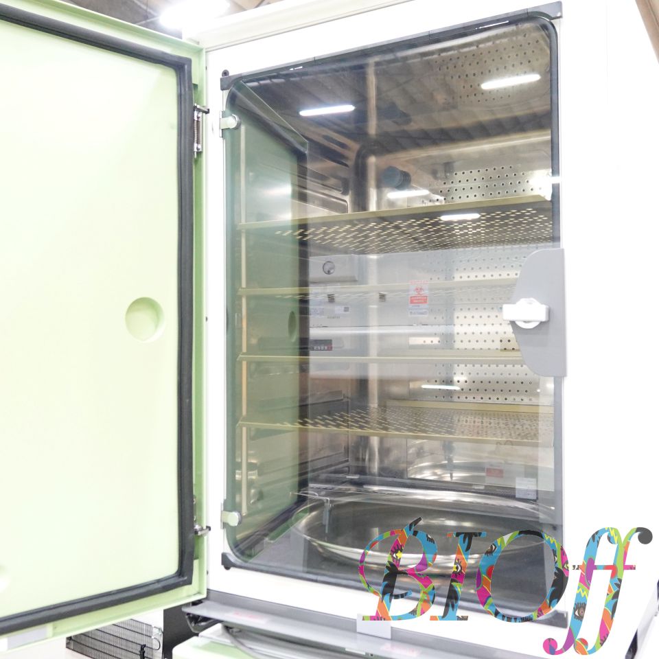 | 仕 様 | ・周囲温度範囲:室温+5~35℃ ・方式:内槽壁面加温、エアジャケット ・温度制御範囲:培養運転時室温+5~50℃(37℃運転には室温は32℃以下であること) ・温度調節精度:±0.1℃(at37℃室温23℃) ・温度分布精度:±0.25℃(37℃室温23℃) ・槽内湿度:95±5%rh ・CO2濃度範囲:0~20.0% ・CO2濃度制御幅:±0.1%(37℃設定、CO2濃度設定5%) ・乾熱滅菌温度:160℃以上 ・電源(50/60Hz):AC100V ・外寸法:幅606×奥行711×高さ896mm ・内寸法:幅478×奥行440×高さ700mm ・内容積:147L ・電源コード、棚板、トレイ 付属 |
