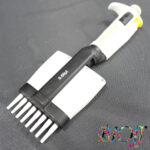 本製品はLabsystems社製の「Finnpipette Digital」シリーズ、容量5~40µlモデルの可変容量シングルチャンネルピペットです。上部ノブを回すことで微量域の容量設定が可能で、側面のデジタル表示窓に設定値が表示されます。小容量DNA・RNA操作や酵素反応、マイクロプレート操作など、精度が求められる分注作業に適しています。親指での押下・戻し操作を想定したエルゴノミクス形状で、長時間作業時の負担軽減が図られています。中古品につき外装に使用感がありますが、基本的な分注機構を有するため、校正・点検を行うことで研究用途の補助的なツールとして活用可能です。適合チップやスタンドなどは別売となります。