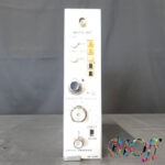 日本光電 AP-630G は、血圧トランスデューサからの微小電気信号を計測・記録装置向けに増幅するプレッシャーアンプモジュールです。ラックマウント方式の生体計測システムに装着して使用するプラグインユニットで、前面パネルにはMEAS/OFF/BAL/CALの動作切替スイッチ、ゲイン調整つまみ、mmHg/DIV表示の感度切替ノブ、DIRECT/MEAN切替スイッチ、PCG OUT端子などを備えています。血圧波形の直圧出力と平均圧出力の選択に対応し、高感度測定に適した構成となっています。本体のみで付属ケーブル等はありません。中古品につき細かなキズや使用感はありますが、外観上大きな破損は確認されていません。