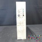 日本光電 EI-601G は、医用・計測用システム向けのインテグレータユニットです。前面パネルに BAL/MEAS/OFF/CAL の動作モード切替、MEAN/INTEG 切替およびリセットスイッチ、クリップ表示ランプを備え、積分値の測定や平均化処理を行うことができます。感度は V·s/DIV 表示のノブで複数レンジから選択可能で、内部・外部タイマーの切替機能により、システム構成に応じた積分時間の制御が可能です。背面は基板実装のアナログ回路およびロータリースイッチで構成され、ラックフレームに挿入して使用するプラグインモジュール形状となっています。中古品につき外装やつまみに使用感がありますが、基本構成部品は揃っている状態です。