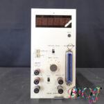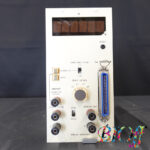 日本光電 ET-612J は、研究・計測用途向けのパルスカウンターです。前面にデジタル表示窓を備え、外部からのパルス信号を入力端子(SAMPLING & GATE、COUNT PULSE)に接続して計数を行います。SAMPLING PULSE の倍率切替(×1/×10)や、MAX LEVEL ダイヤルにより計数レンジやしきい値を調整でき、STEP/HOLD スイッチで計数値の更新動作を切り替え可能です。ANALOG OUT 端子からは計数結果に応じたアナログ信号を出力し、側面の多ピンコネクタを介してプリンタ等への接続も想定されています。本体はラックマウント型ユニット構造で、内部には多芯ケーブルや基板が収納されており、システム計測装置の一部として使用される設計です。