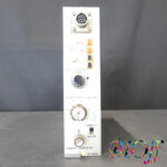 日本光電製ED-600Gは、生体信号処理装置などのシステムに組み込んで使用するディファレンシエータ(微分増幅)モジュールです。前面パネルには測定/オフ/校正の切替スイッチ、可変時間定数ノブ、ハイカットフィルタ設定、感度調整ノブ、クリッパー切替スイッチなどが配置され、目的の波形抽出やノイズ低減に応じた細かな条件設定が可能です。本体はプラグイン方式でラックに抜き差しして使用する構造となっており、医療・研究機関向けの多チャンネル記録システムの一部として設計されています。旧モデルのため詳細仕様は限られますが、生体信号の微分処理やトリガ抽出用途に適した専門的な信号処理モジュールです。